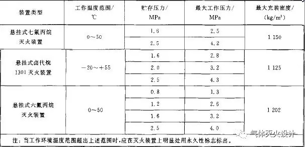 其中柜式七氟丙烷灭火装置钢瓶的最大充装量为1150kg/m³。