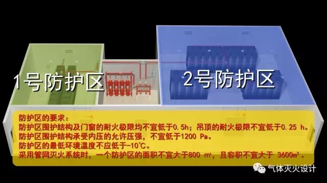 7、 防护区宜以单个封闭空间划分,不宜将两个或两个以上的房间划分到同一防护区;