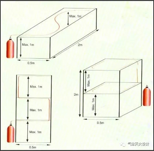 1 直接式七氟丙烷探火管灭火装置保护的防护区最大单体容积不应大于6m³;直接式二氧化碳探火管灭火装置保护的防护区最大单体容积不应大于3m³。