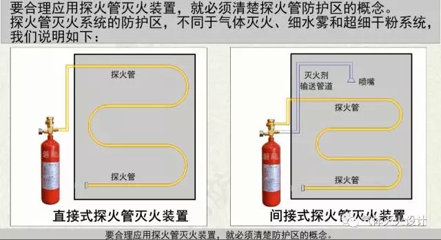 探火管灭火装置分七氟丙烷探火管灭火装置、二氧化碳探火管灭火装置和干粉探火管灭火装置(很少见,尽量不采用),设计前应先确定采用那种探火管灭火装置。