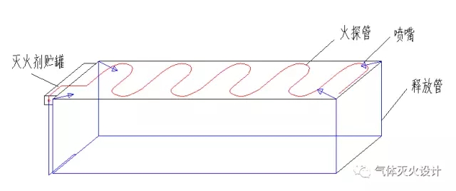方案二:独立的火探管系统,同时增加手动释放系统及主动灭火管路。