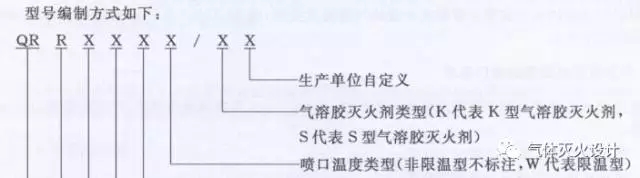 根据《气溶胶灭火系统》G499.1-2010的第5条规定,气溶胶灭火装置的命名规则为QRR开头。详见以下截图示例: