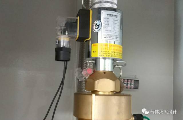 电磁阀上装有的安全挡片是为防止运输、安全、调试过程中因碰撞、震动等使闸刀误动作而设。系统投入使用前,需松开电磁铁上的螺栓、抽出档片,再紧固电磁铁,否则电磁阀不能打开。安全卡簧是用于锁定手动压把的,仅在机械手动启动容器阀时必须先拉出安全卡簧才能压下手动压把,而手动压把并不影响电磁阀的电气启动。