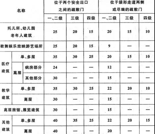 注:1.开向敞开式外廊的户门至最近安全出口的最大直线距离可按本表的规定增加5m。