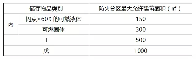 4、丙、丁、戊类物品库房的防火分区允许最大建筑面积应符合下表的规定。当设置有火灾自动报警系统和自动灭火系统时,允许最大建筑面积可增加1倍;局部设置时,增加的面积可按该局部面积的1倍计算。