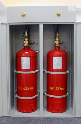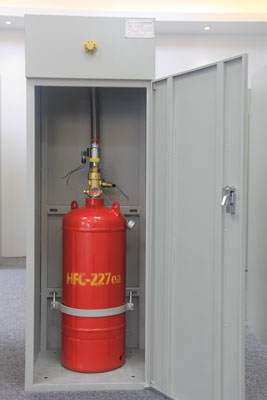 七氟丙烷(HFC-227ea/FM200)是一种以化学灭火为主,兼有物理灭火作用的洁净气体灭火剂;它无色、无味、低毒、不导电、不污染被保护对象,不会对财物和精密设施造成损坏;能以较低的灭火浓度,可靠的扑灭B、C类火灾及电器火灾;储存空间小,临界温度高,临界压力低,在常温下可液化储存;释放后不含粒子或油状残余物,对大气臭氧层无破坏作用(ODP值为零),在大气层停留时间为31~42年,符合环保要求。