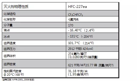 七氟丙烷灭火剂物理特性见下表