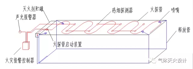 方案二:独立的火探管系统,同时增加手动释放系统及主动灭火管路。