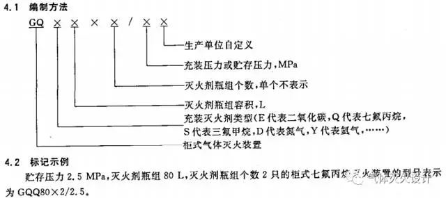 现在就常用的气体灭火产品型号说明如下: