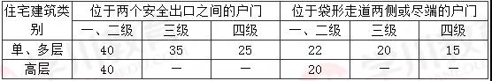 注:1.开向敞开式外廊的户门至最近安全出口的最大直线距离可按本表的规定增加5m。