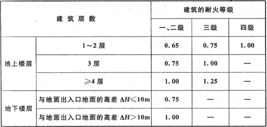 表5.5.21-1每层的房间疏散门、安全出口、疏散走道和疏散楼梯的每100人最小疏散净宽度(m/百人)