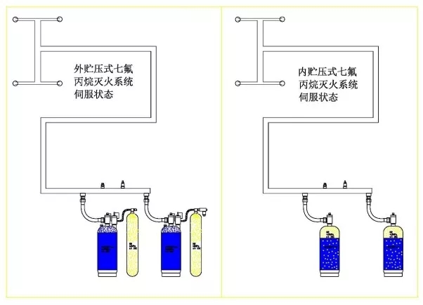 外储压七氟丙烷灭火系统与常规内储压七氟丙烷灭火系统的不同之处在于: