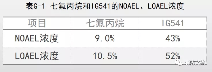 根据《气体灭火系统设计规范 》GB50370-2005附录G,七氟丙烷灭火剂的无毒性反应浓度和有毒性反应浓度如下表所示: